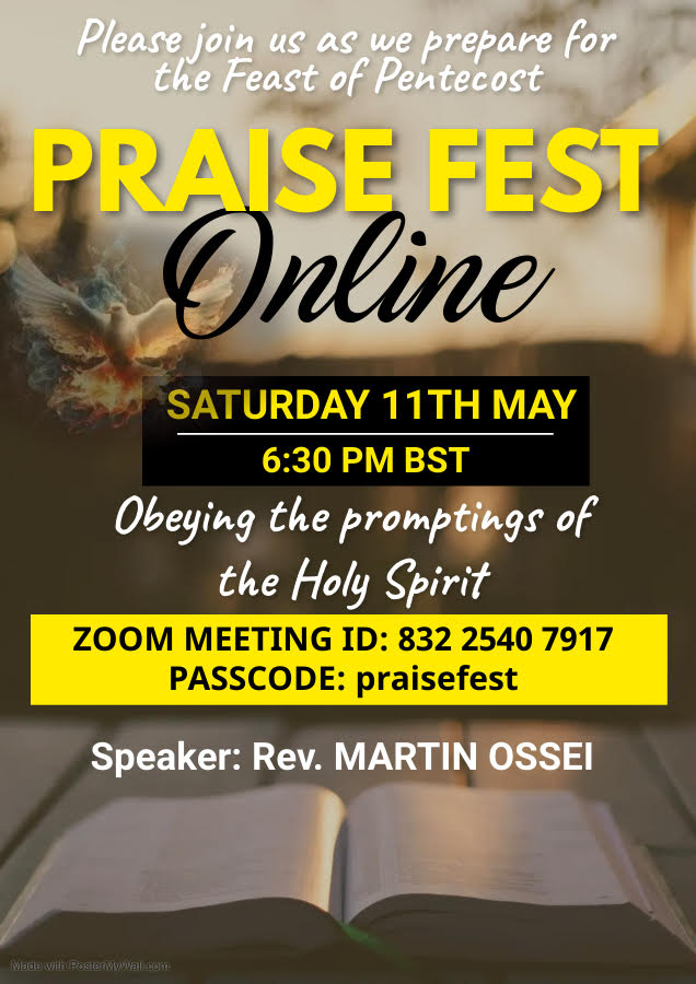 Praise Fest on Saturday 11th May at 6.30pm