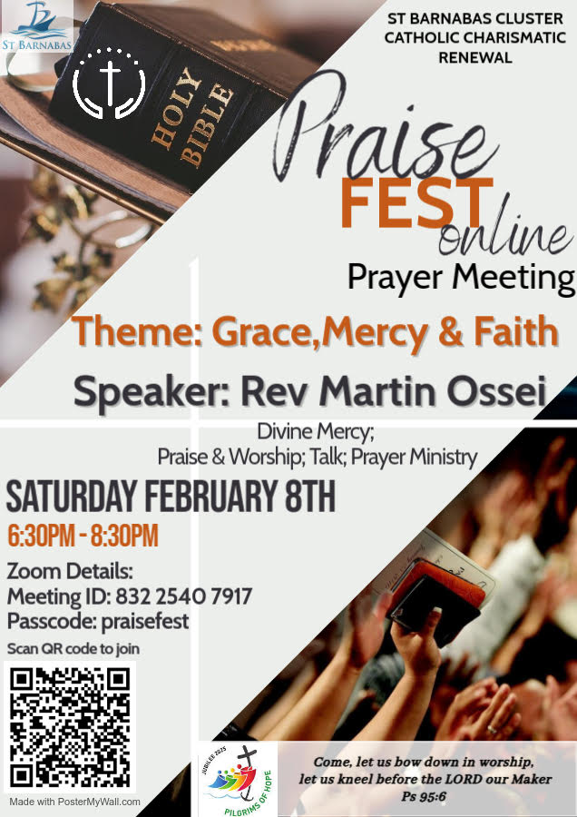 Praise Fest Online on Saturday 8th February 6.30pm to 8.30pm