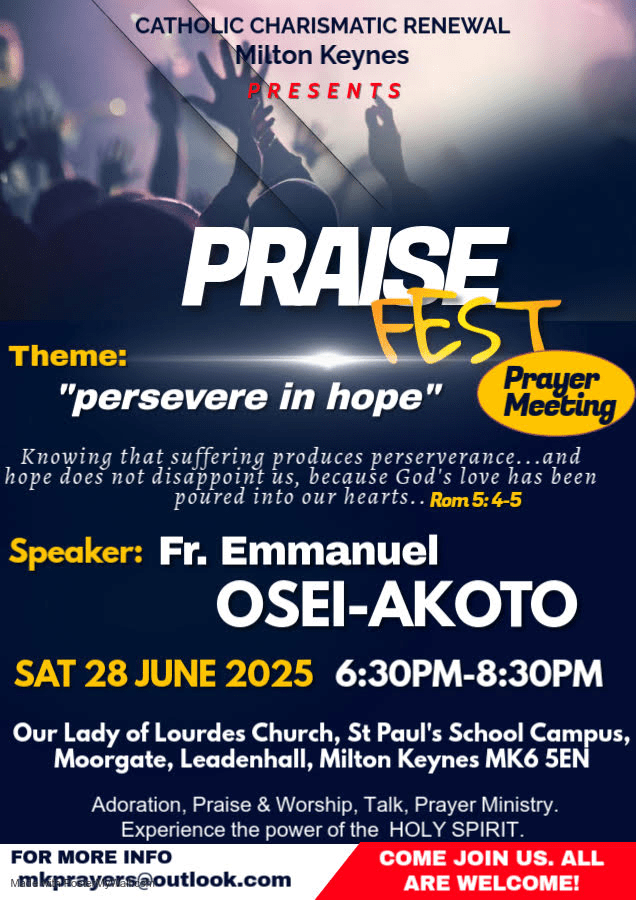 Praise Fest on Saturday 28th June 6.30pm to 8.30pm