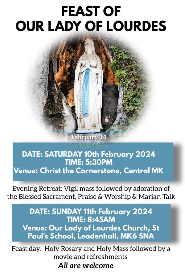 on Feast of Our Lady of Lourdes on Saturday 10th February 2024
